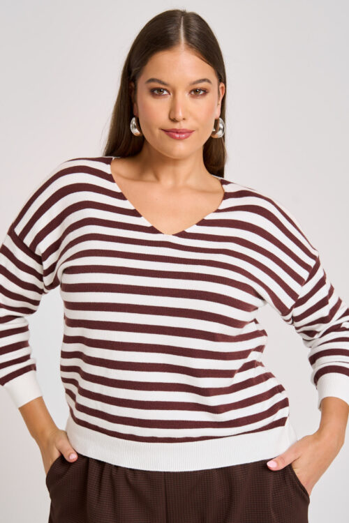 Out of stockΠλεκτό Πουλόβερ Ριγέ Riga Καφέ