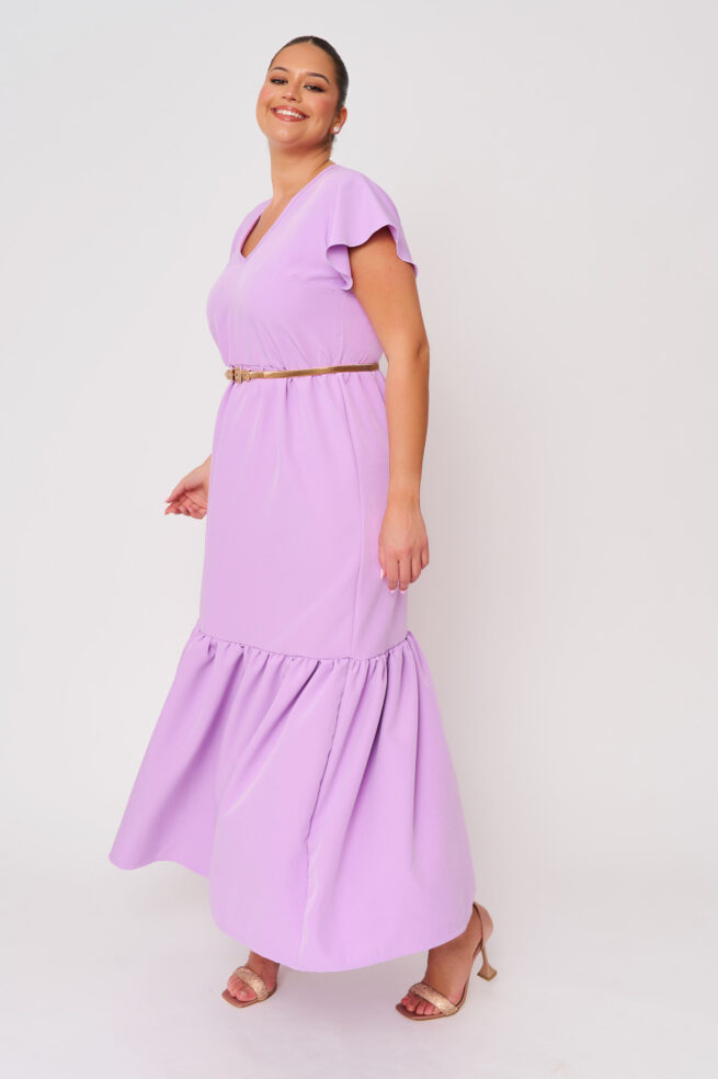 Maxi φόρεμα με βολάν στο τελείωμα. V λαιμόκοψη και λάστιχο κάτω από το στήθος. Κοντά αέρινα μανίκια. Ένα κομμάτι που ξεχωρίζει για το στιλ και την άνεσή του. Η Ιβάνα έχει ύψος 180εκ, στήθος 114εκ ,μέση 88εκ και περιφέρεια 121εκ. και φοράει 2xl.
