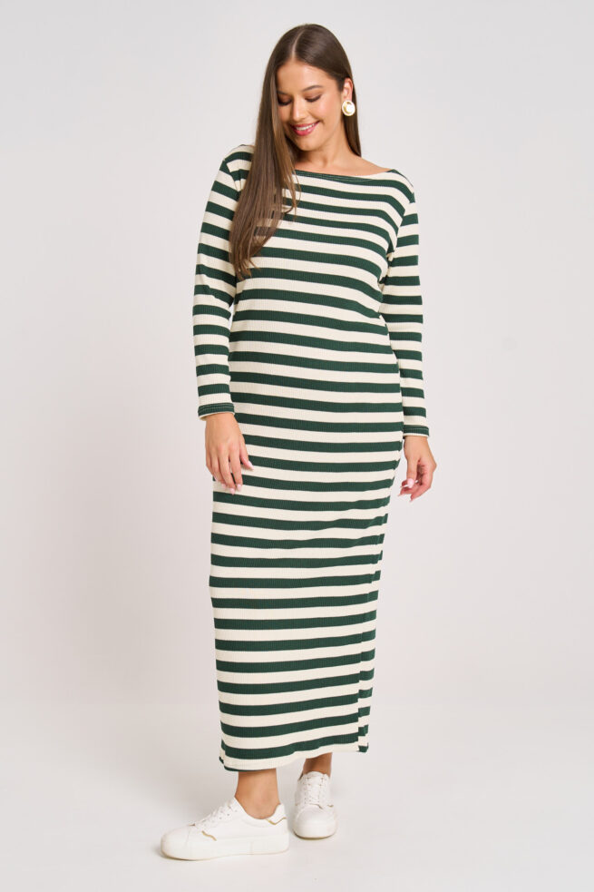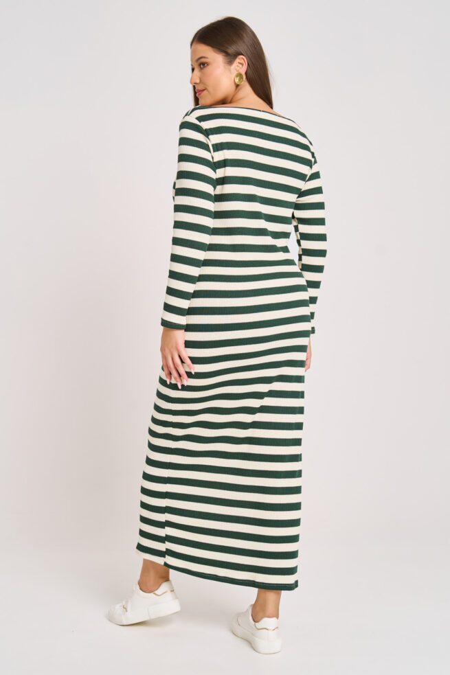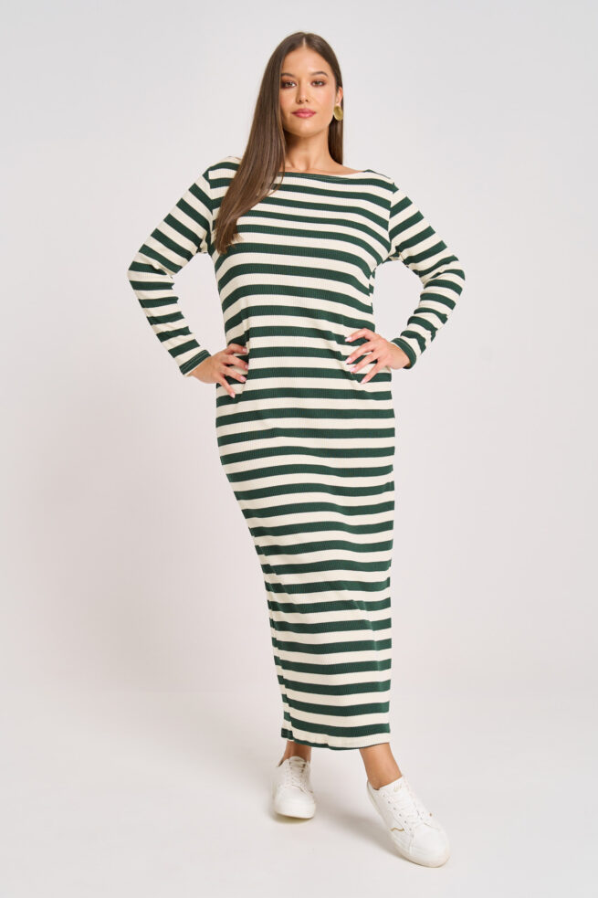 Φόρεμα Πλεκτό Μάξι Ριγέ Ivana Πράσινο