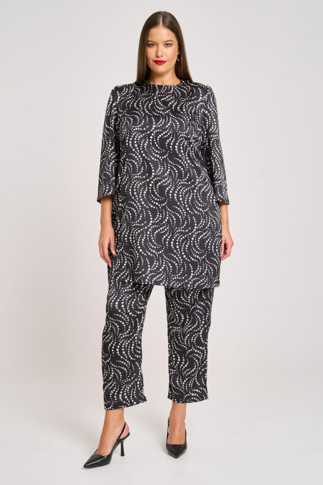 Mini μακρυμάνικο φόρεμα από σατέν φλοράλ ύφασμα σε Α γράμμη. Στρόγγυλη λαιμόκοψη. 3/4 μανίκια. Συνδυάστε το με το ίδιο παντελόνι για το απόλυτο layering! Μια κομψή και chic επιλογή για να πας σε event, parties ή άλλες εκδηλώσεις κι εξόδους. Η Ιβάνα έχει ύψος 180εκ, στήθος 114εκ ,μέση 88εκ και περιφέρεια 121εκ και φοράει xl.