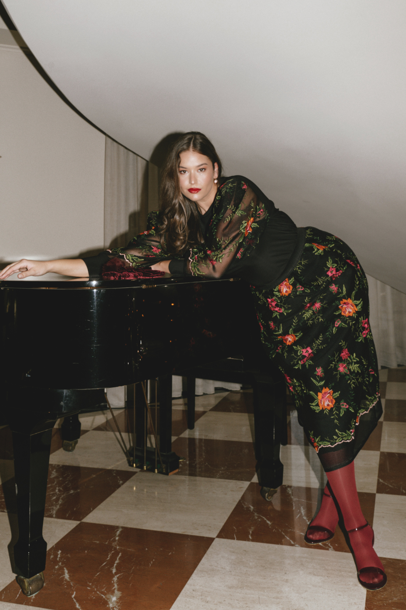 Φούστα maxi από περίτεχνο κεντητό ύφασμα με λουλούδια. Εσωτερική φόδρα στο ίδιο χρώμα. Διαθέτει λάστιχο στη μέση. Μπορείτε να το συνδυάστε με το ίδιο μπλουζάκι όπως απεικονίζεται αλλά και με οποιοδήποτε κορμάκι ή πουκάμισο. Η Ιβάνα έχει ύψος 180εκ, στήθος 114εκ ,μέση 88εκ και περιφέρεια 121εκ και φοράει xl.