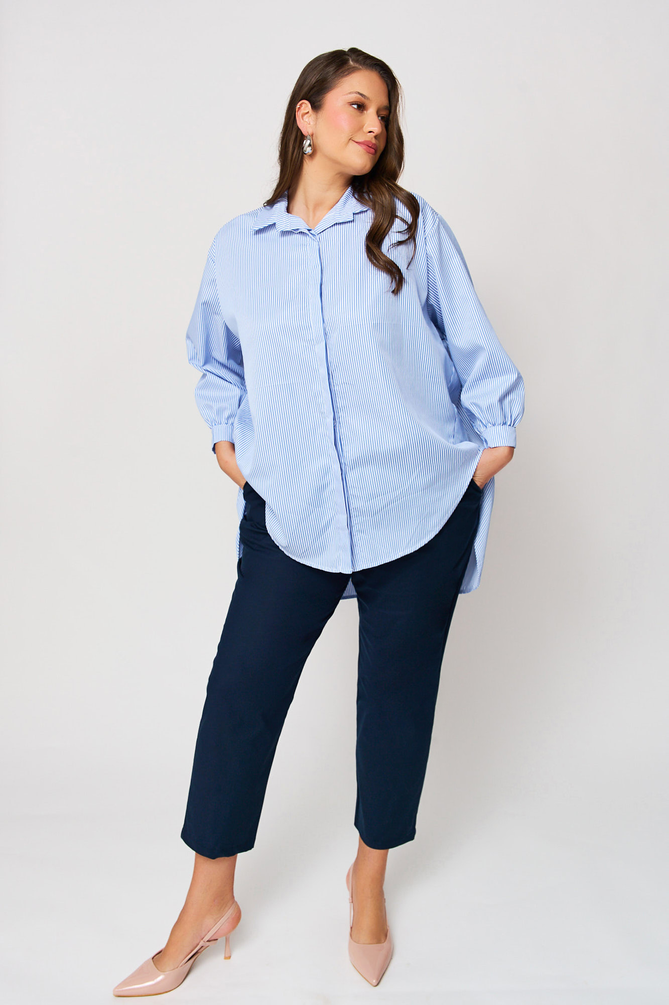 Μπλούζα Μακριά Ελαστική με V Katerina Μπλε