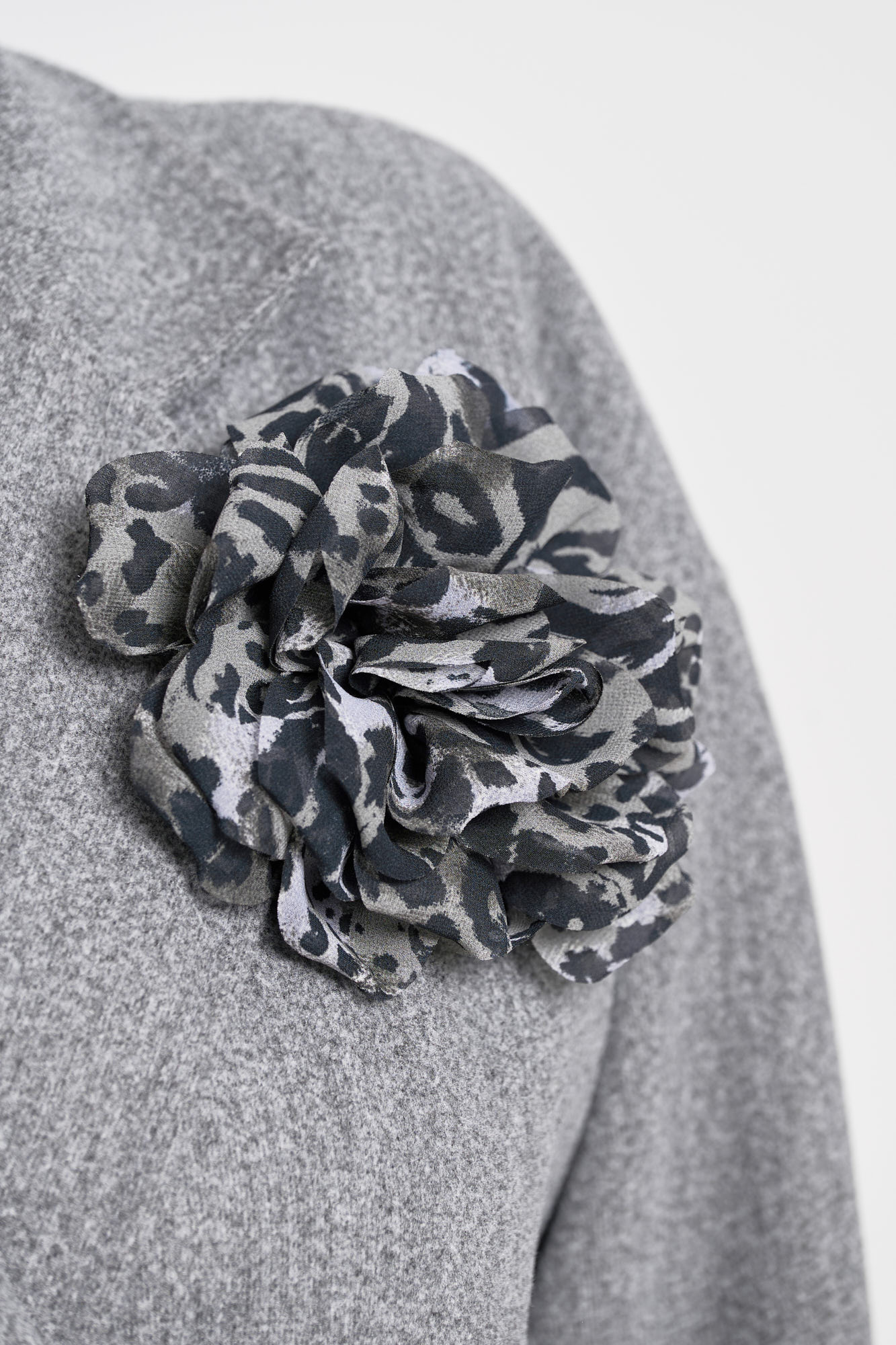 Καρφίτσα μπουτονιέρα λουλούδι. Φορέστε την σαν καρφίτσα πάνω στο αγαπημένο σας ρούχο ή στα μαλλιά σας, καθώς έχει και κλιψάκι για τα μαλλιά. Σε leopard print γκρι-μαύρο. Ø15εκ.
