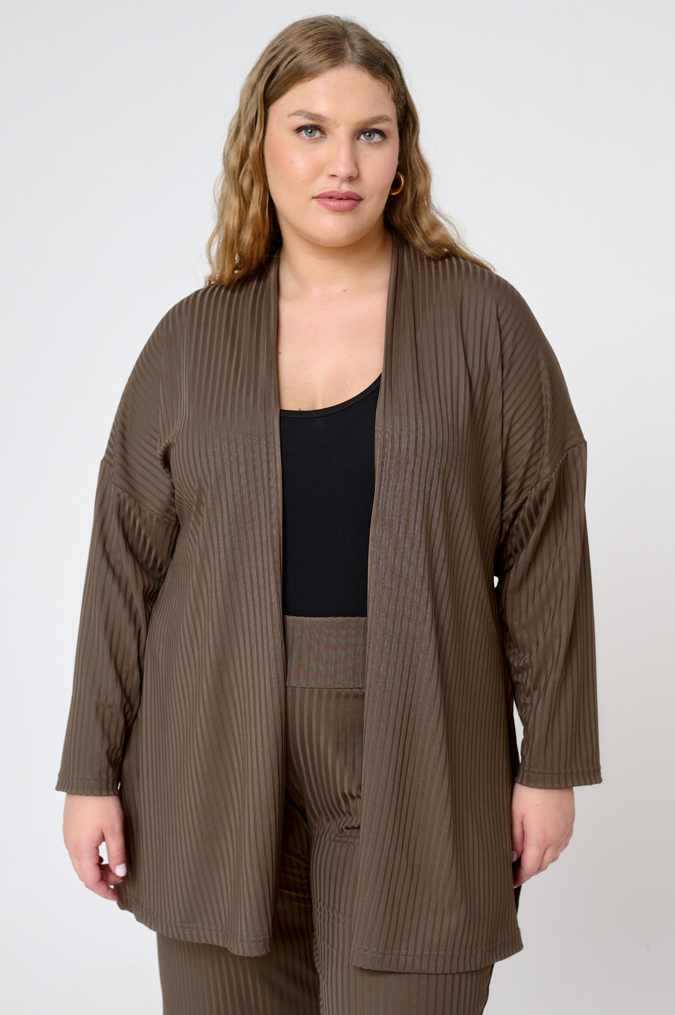 Ελαστικό κιμονό με μακριά μανίκια. Ύφασμα σε διάταξη που κολακεύει την σιλουέτα. Άνοιγμα στα πλαϊνά. Συνδυάστε το με την παντελόνα Nora και απολαύστε αμέτρητους συνδυασμούς. Η Θεοδώρα έχει ύψος 1,70, μέση 103εκ, περιφέρεια 125εκ και φοράει xl.
