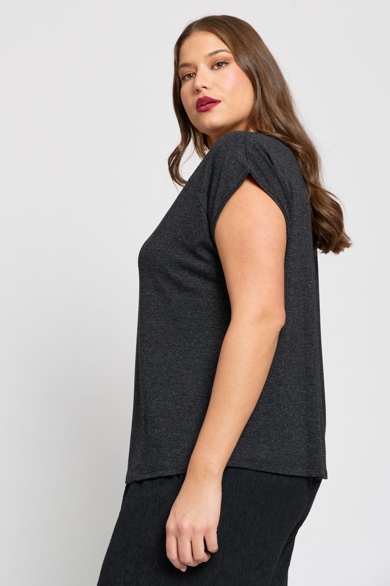 Lingerie τοπ γκρι ανθρακί. V λαιμόκοψη με δαντέλα χρυσή λεπτομέρεια που συνδυάζει απλότητα και κομψότητα. Ζαπονέ μανίκια. Ιδανική για casual ή semi-casual εμφανίσεις, προσφέροντας μία διακριτική αλλά εντυπωσιακή αίσθηση που μπορεί να φορεθεί σε ποικιλία περιστάσεων. Η Ιβάνα έχει ύψος 180εκ, στήθος 114εκ ,μέση 88εκ και περιφέρεια 121εκ και φοράει xl.