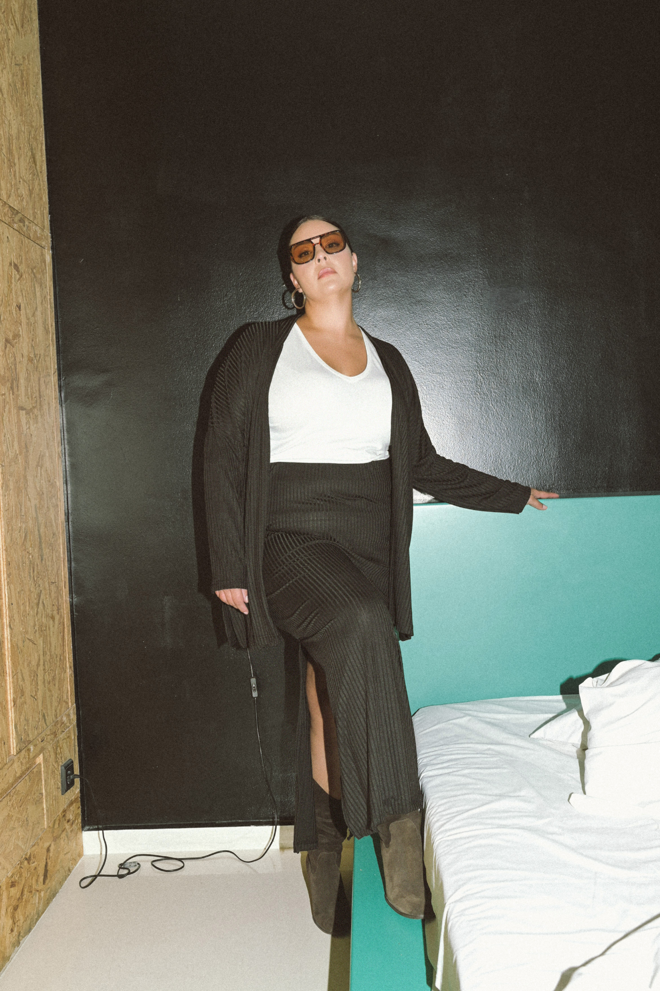 Ελαστική μάξι φούστα με λάστιχο στην μέση. Ύφασμα σε διάταξη που κολακεύει την σιλουέτα. Δύο πλαϊνά σκισίματα στο τελείωμα για ευκολία στο βάδισμα. Συνδυάστε την με το κιμονό Nora και απολαύστε αμέτρητους συνδυασμούς. Η Αλεξία έχει ύψος 1,75, μέση 100εκ, περιφέρεια 115εκ. και φοράει xl.