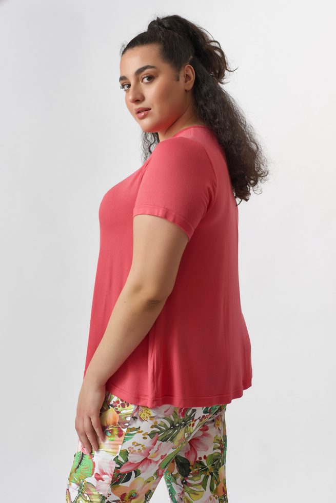 Αέρινο ελαστική μπλούζα. Στρογγυλή λαιμόκοψη και κοντά μανίκια. Σε άλφα, άνετη γραμμή. Ένα εύκολο κομμάτι για τις καθημερινές σου εμφανίσεις. Η Ζωή έχει ύψος 175εκ, στήθος 110εκ, μέση 88εκ και περιφέρεια 125εκ. και φοράει xl.