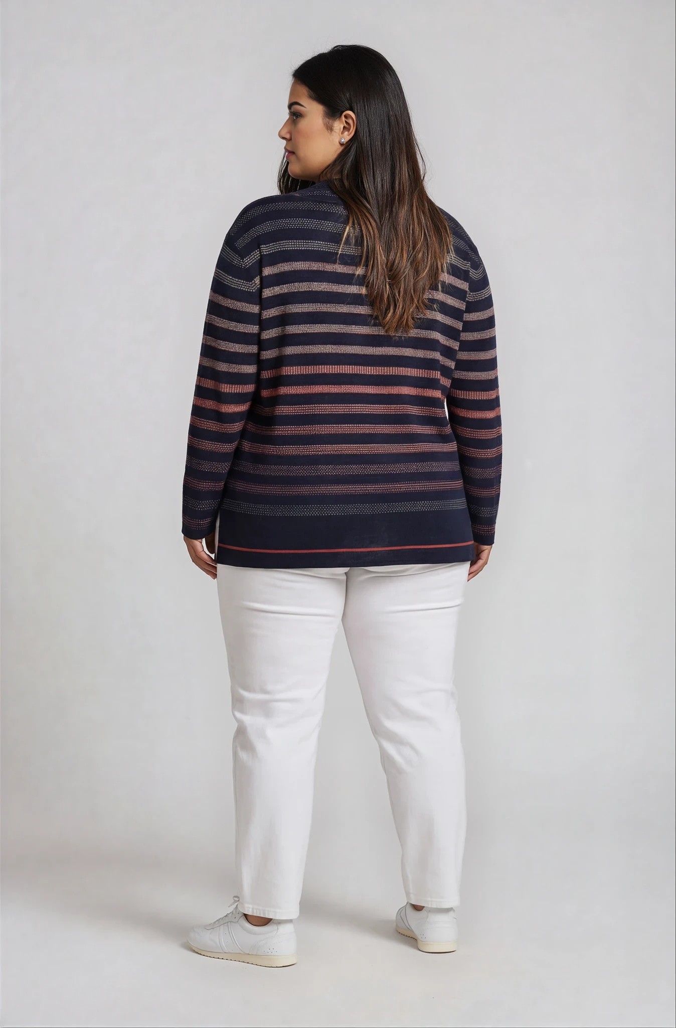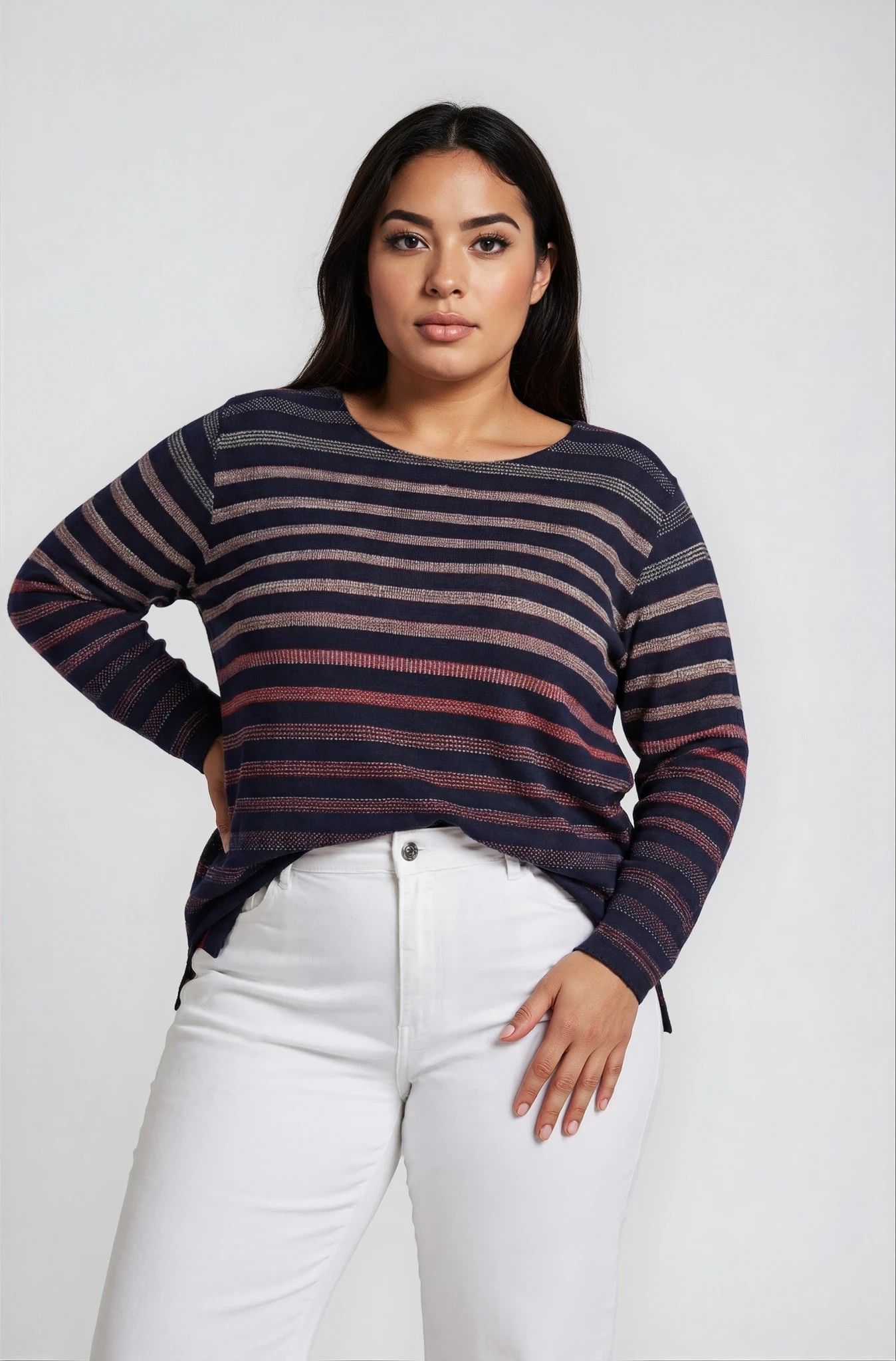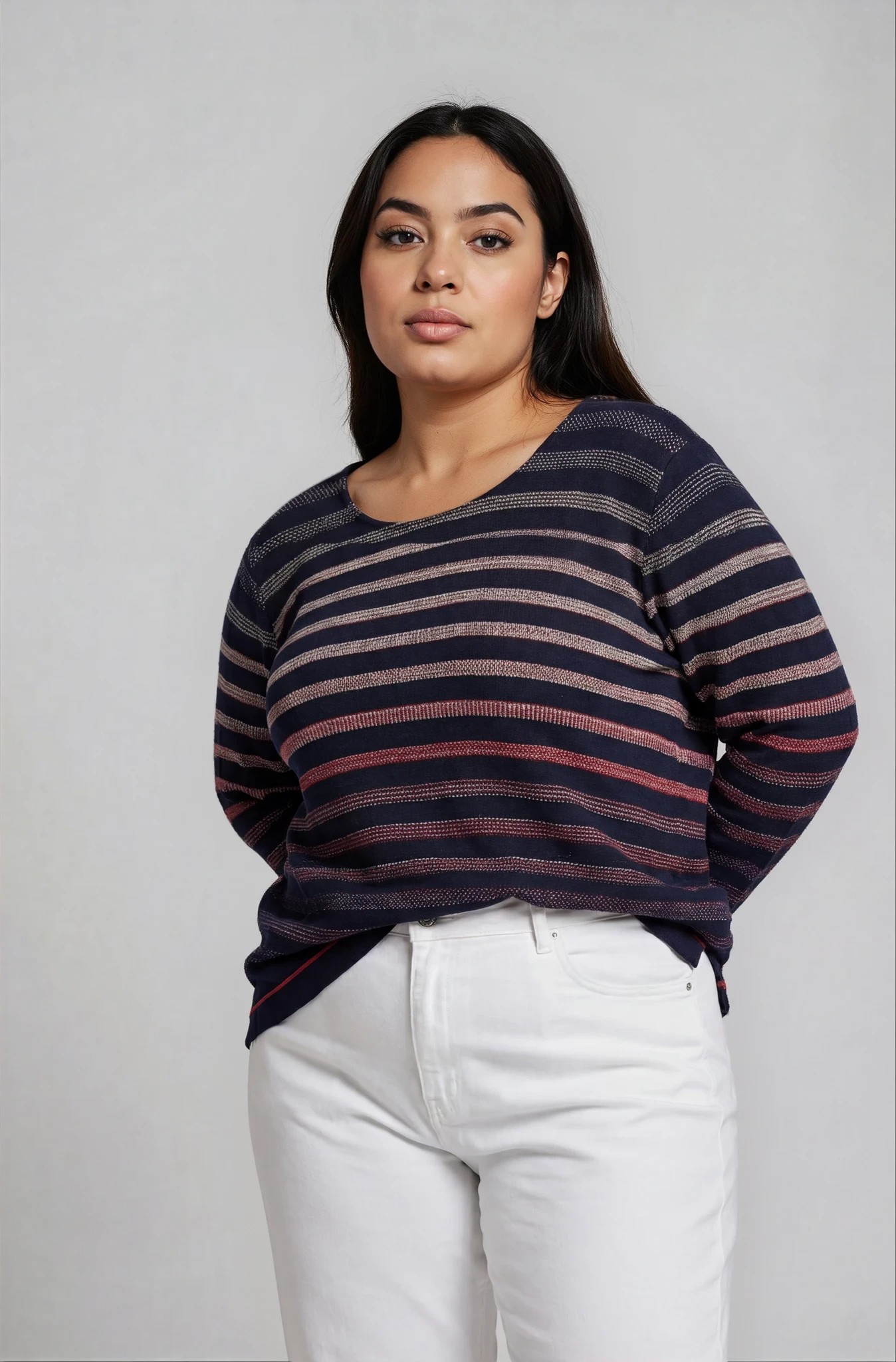 Άνετη και κομψή μπλούζα από ελαστική βισκόζη που προσφέρει απαλή αίσθηση και άψογη εφαρμογή. Διαθέτει στρογγυλή λαιμόκοψη και πρακτικό μανίκι 3/4, ιδανικό για καθημερινές εμφανίσεις όλο τον χρόνο. Το ιδιαίτερο ριγέ μοτίβο σε ζακάρ ύφανση δημιουργεί ένα διακριτικό «κεντητό» εφέ στο ύφασμα, χαρίζοντας κομψότητα και μοναδική υφή.