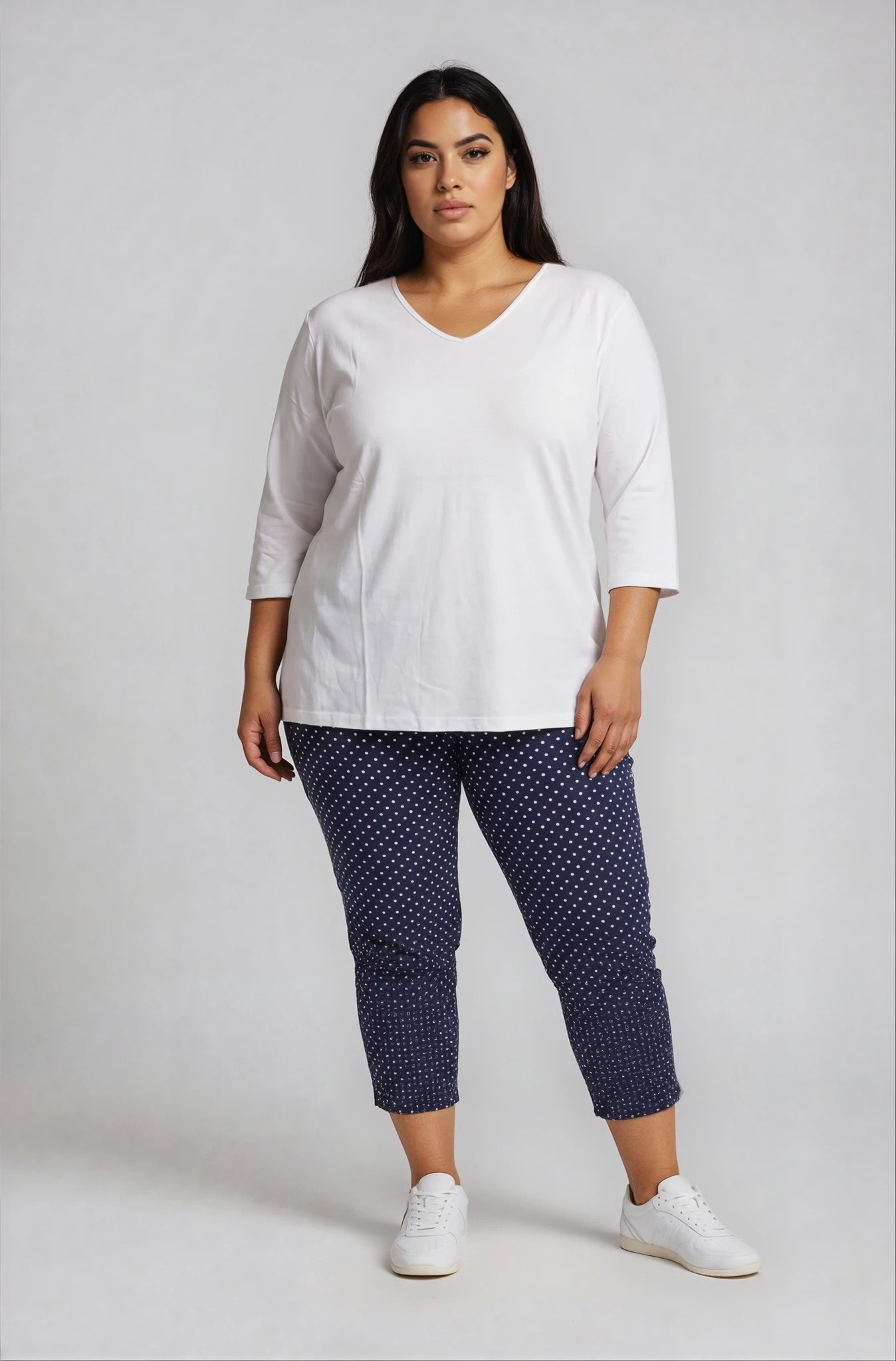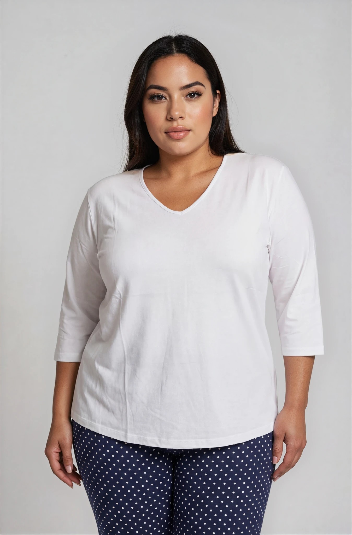 Μπλούζα από ελαστική βισκόζη με απαλή υφή και άνετη εφαρμογή που αγκαλιάζει το σώμα χωρίς να πιέζει. Διαθέτει κολακευτική V λαιμόκοψη και μανίκια 3/4, ιδανική για καθημερινά looks με στιλ. Η γραμμή της είναι ελαφρώς άλφα, προσφέροντας άνεση και κομψότητα, ενώ το ύφασμα έχει όμορφη ροή που δεν κολλάει στο σώμα. Φοριέται ιδανικά με παντελόνες, φούστες ή jeans.