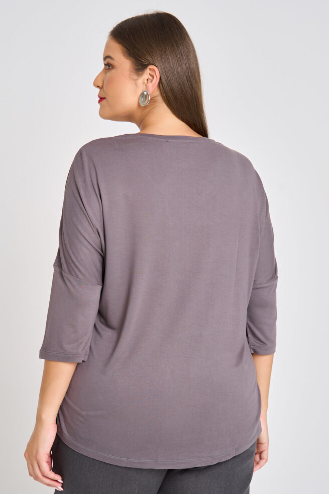 Ανανεώστε το office look σας με αυτήν την elegant μπλούζα. Διαθέτει στρογγυλή λαιμόκοψη και μανίκια 3/4, ενώ το εμπριμέ μπροστινό μέρος από ματ σατέν προσθέτει διακριτική λάμψη και θηλυκότητα. Η πίσω πλευρά από ελαστική βισκόζ εξασφαλίζει άνεση και τέλεια εφαρμογή όλη μέρα.