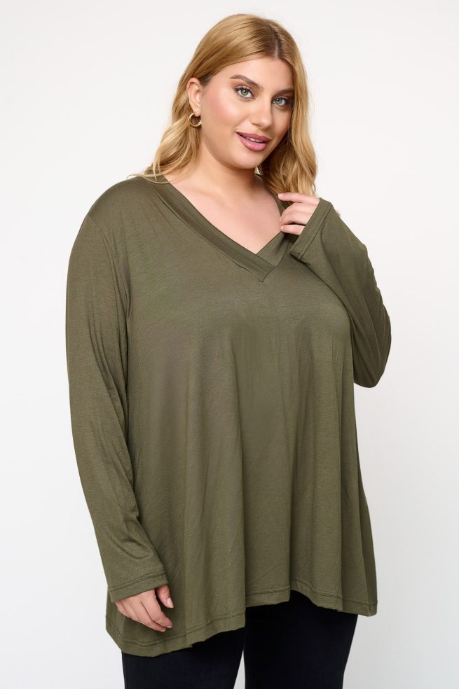 Μονόχρωμη μπλούζα από ελαστική βισκόζη. V λαιμόκοψη. Μακριά μανίκια. Μήκος 82εκ. Ένα basic κομμάτι που πρέπει να βρίσκεται σε κάθε γκαρνταρόμπα. Είναι one size και καλύπτει έως 150εκ. στήθος και 170εκ. περιφέρεια. Μήκος 82εκ. Η Αλεξία έχει ύψος 1,75, στήθος 110εκ, περιφέρεια 115εκ.