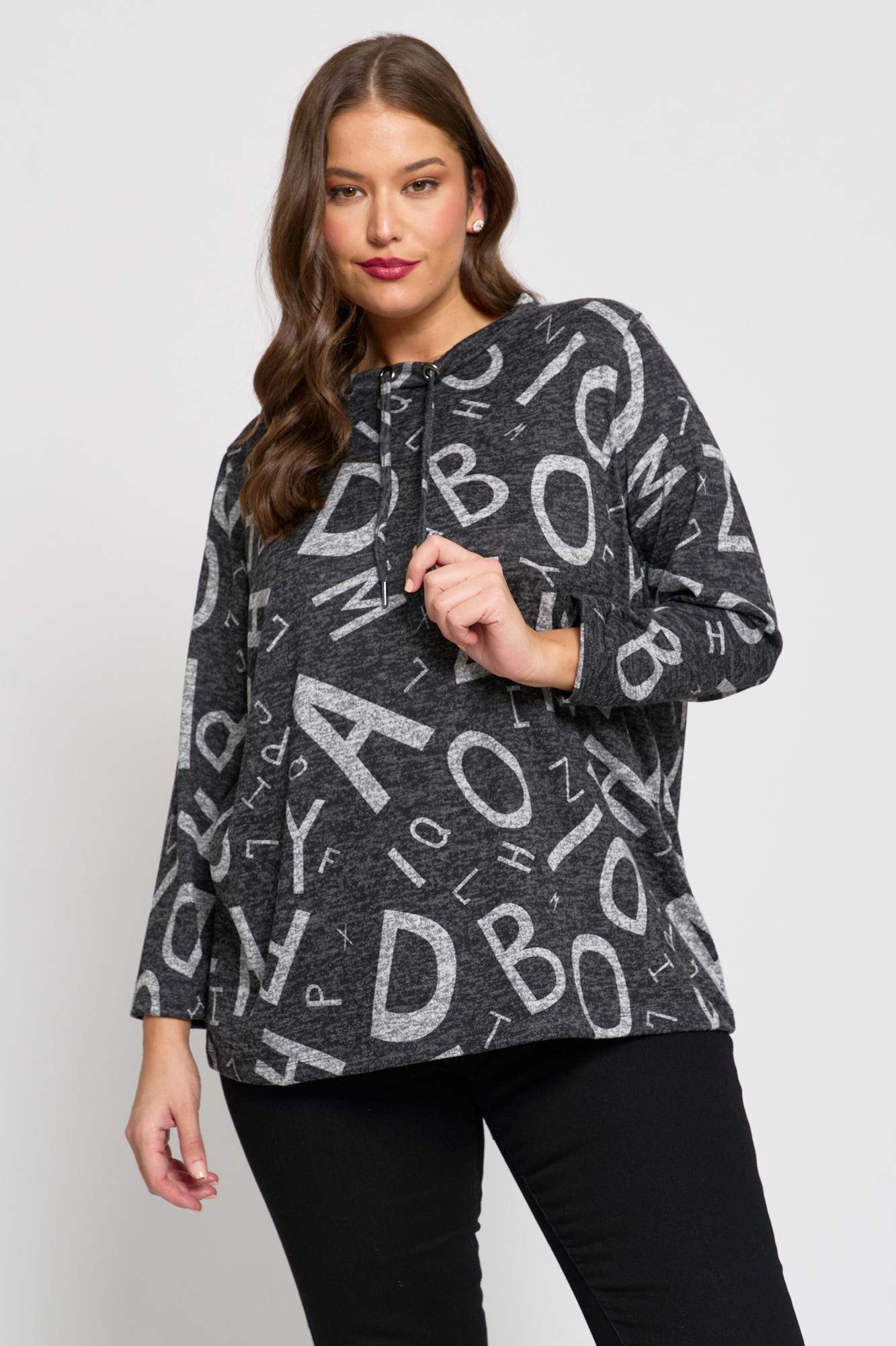 Πλεκτή μπλούζα σε χρώμα γκρι σκούρο. Στρογγυλή λαιμόκοψη με λουπέτο και κορδόνι. Ιδιαίτερο μοτίβο σε γκρι αποχρώσεις. Η τέλεια επιλογή για καθημερινές εμφανίσεις. Η Ιβάνα έχει ύψος 180εκ, στήθος 114εκ ,μέση 88εκ και περιφέρεια 121εκ και φοράει xl.