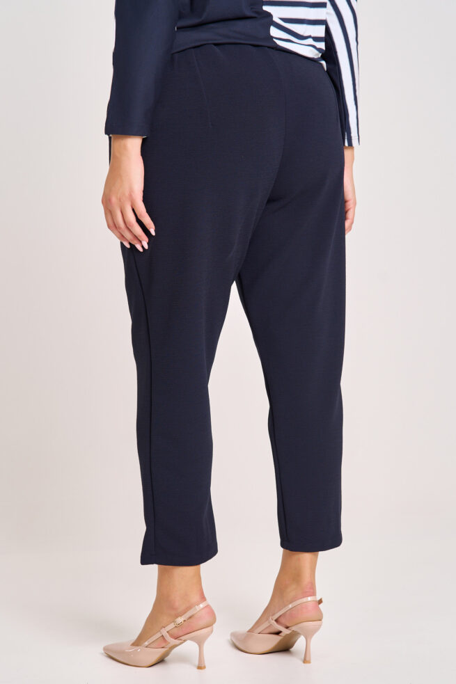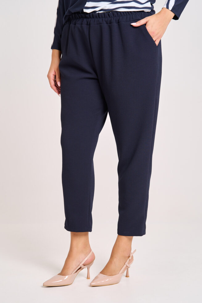 Αναβαθμίστε το καθημερινό σας στυλ με αυτό το κομψό carrot παντελόνι σε γκοφρέ κρεπ ύφασμα. Η γραμμή του αγκαλιάζει το σώμα, ενώ το λάστιχο στη μέση προσφέρει απόλυτη άνεση και τέλεια εφαρμογή καθ’ όλη τη διάρκεια της ημέρας. Διαθέτει πρακτικές πλαϊνές τσέπες, ιδανικές για extra άνεση και στυλ. Η Ιβάνα έχει ύψος 180 εκ., μέση 88 εκ. και περιφέρεια 121 εκ., και φοράει μέγεθος XL.