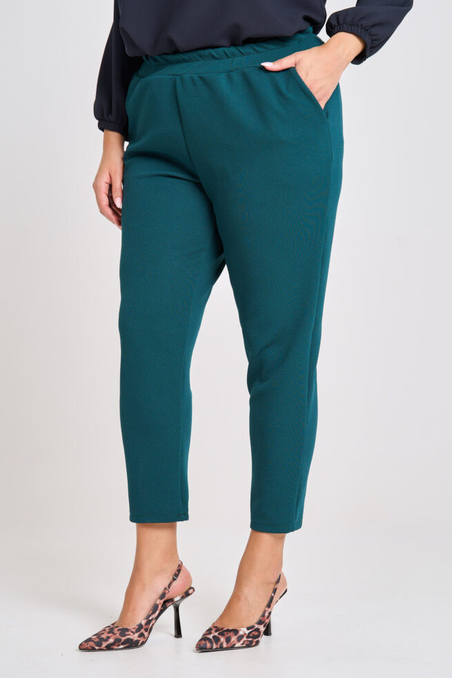 Αναβαθμίστε το καθημερινό σας στυλ με αυτό το κομψό carrot παντελόνι σε πετρόλ ψιλό καρό ύφασμα. Η γραμμή του αγκαλιάζει το σώμα, ενώ το λάστιχο στη μέση προσφέρει απόλυτη άνεση και τέλεια εφαρμογή καθ’ όλη τη διάρκεια της ημέρας. Διαθέτει πρακτικές πλαϊνές τσέπες, ιδανικές για extra άνεση και στυλ. Η Ιβάνα έχει ύψος 180 εκ., μέση 88 εκ. και περιφέρεια 121 εκ., και φοράει μέγεθος XL.