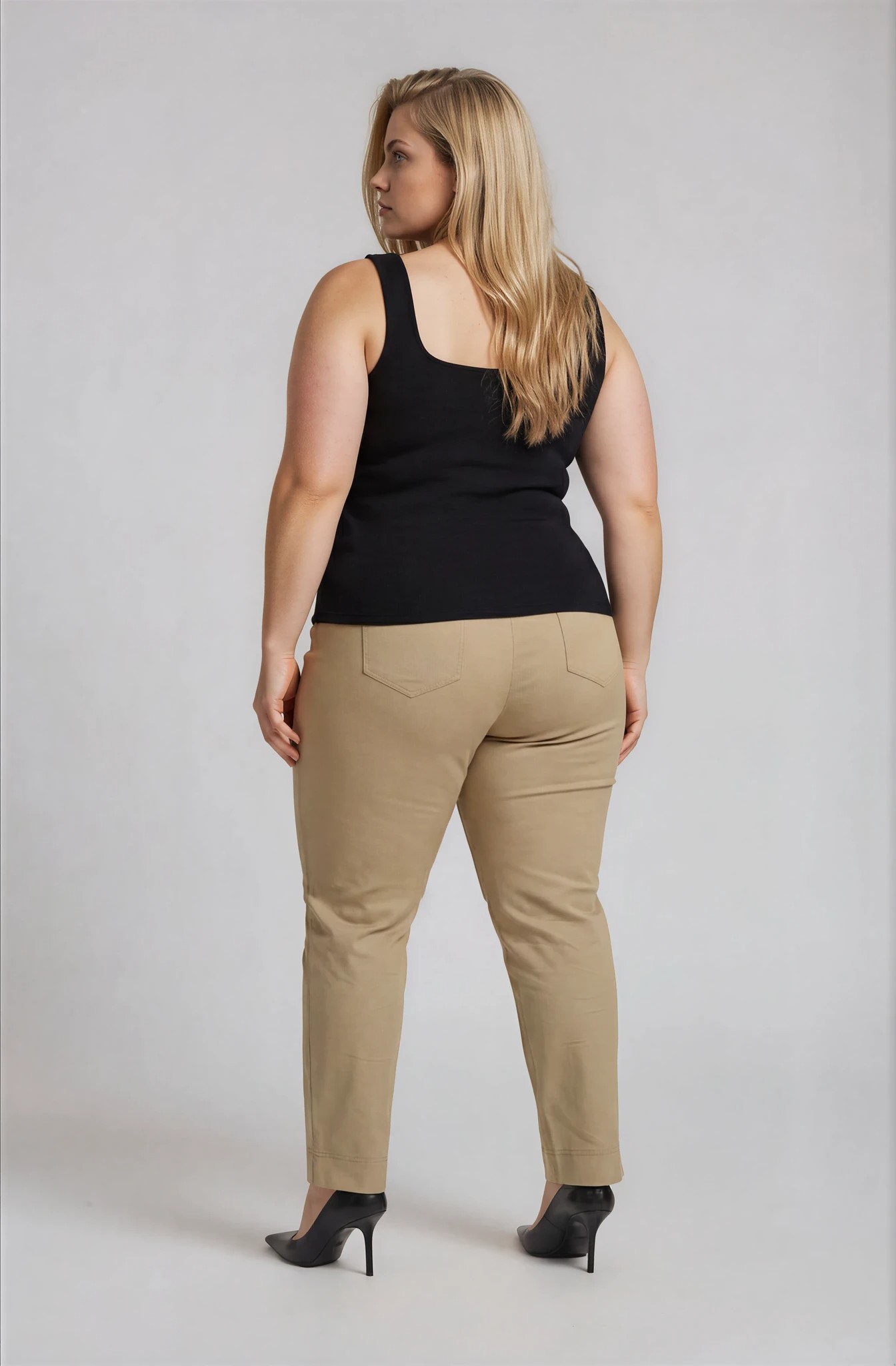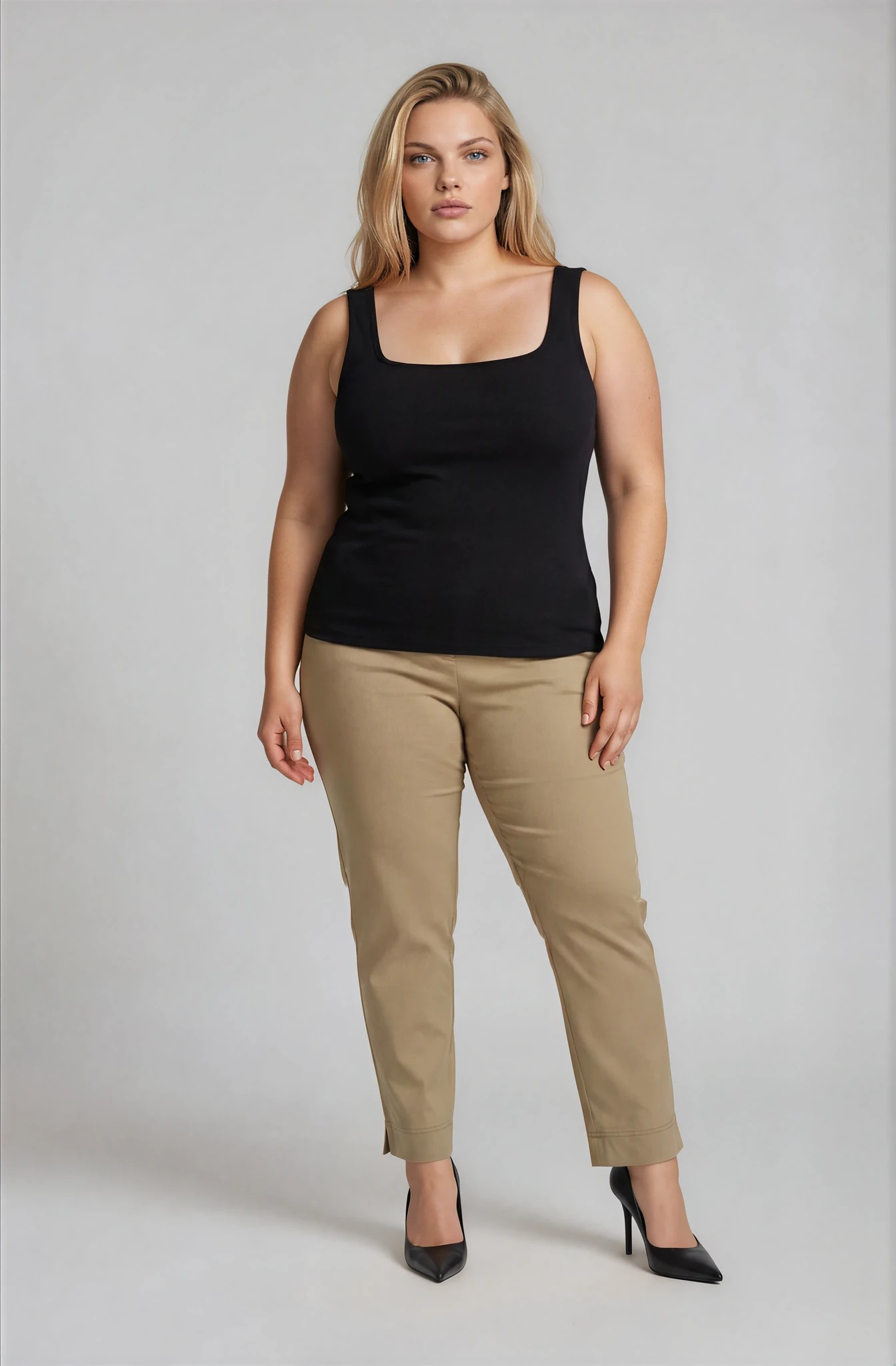 ‘Ισιο παντελόνι από ανορθωτικό slim stretch ελαστικό ύφασμα. Ελαστική μέση για άνεση. Πίσω τσέπες. Πένσες για άψογη εφαρμογή. Πλαϊνά ανοίγματα στο κάτω μέρος. Το απόλυτο must-have παντελόνι που θα αναβαθμίσει τα look σας. Η Σταυρούλα φοράει το xl.
