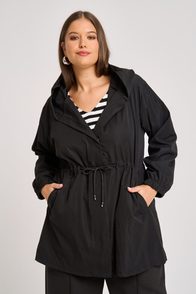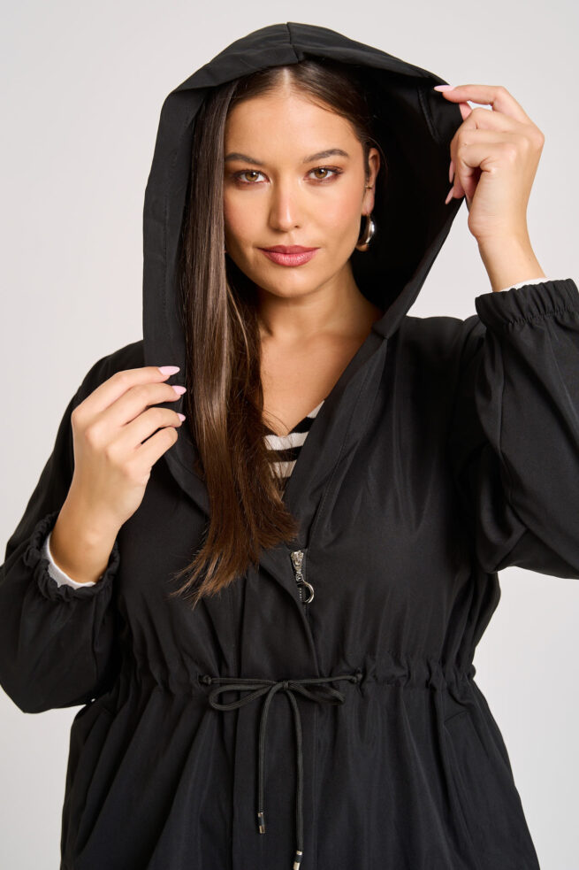 Παρκά με Κουκούλα και Ρυθμιζόμενη Μέση Cindy Μαύρο