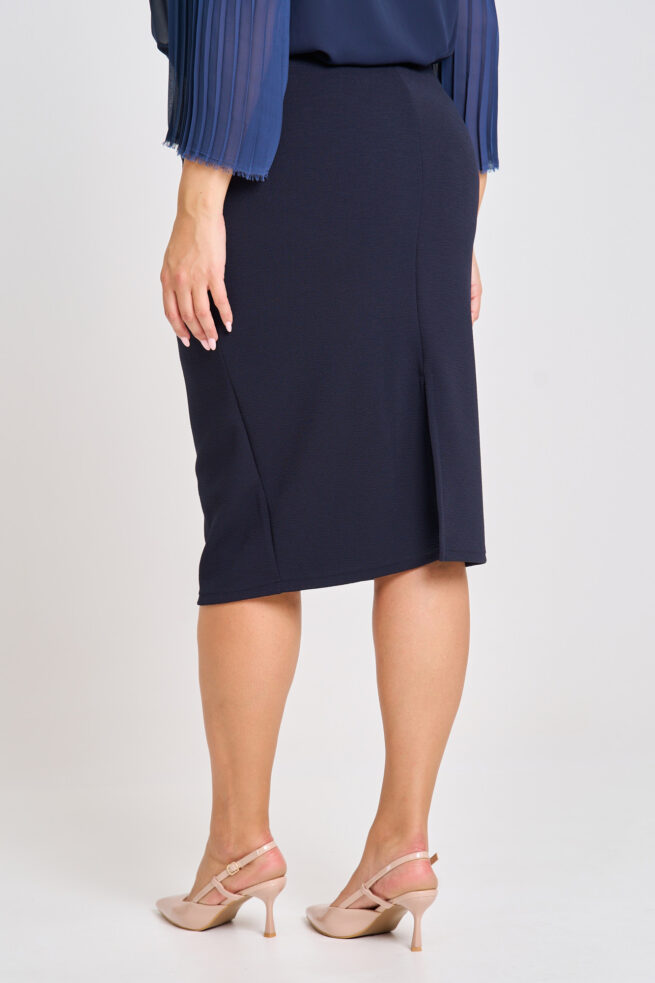 Αναδείξτε τη θηλυκότητά σας με αυτή την πένσιλ φούστα σε Γκοφρέ κρεπ ύφασμα. Με εφαρμοστή γραμμή που ακολουθεί το σώμα και λάστιχο στη μέση για επιπλέον άνεση, αποτελεί ιδανική επιλογή για το γραφείο αλλά και για κομψές καθημερινές εμφανίσεις. Το ελαφρώς ελαστικό ύφασμα χαρίζει άνετη εφαρμογή, χωρίς να πιέζει.