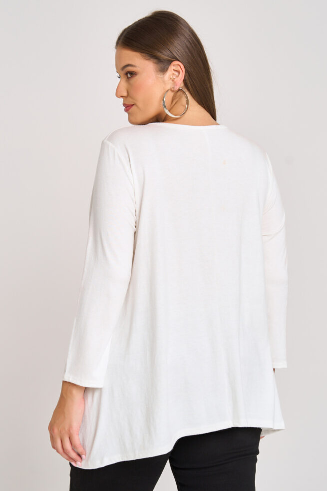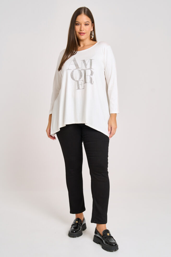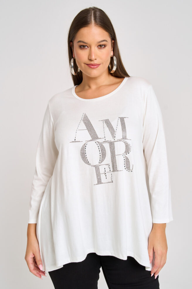 Πλεκτή ελαστική μακριά μπλούζα. Στρόγγυλη λαιμόκοψη. Μακριά μανίκια. Στάμπα με στρας στο μπροστινό μέρος. Πολύ μαλακή και φιλική στο δέρμα. Συνδυάζεται τέλεια με τζιν και κολάν για casual chic εμφανίσεις. Είναι one size και καλύπτει έως 140εκ στήθος και 160εκ περιφέρεια. Μήκος 74/85εκ. Η Ιβάνα έχει ύψος 180εκ, στήθος 114εκ ,μέση 88εκ και περιφέρεια 121εκ και φοράει xl.